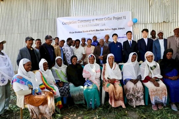 竣工移交仪式现场气氛热烈。埃塞阿姆哈拉州明贾尔区农业负责人西赛·尼加图、当地农业部代表、XINGKONG SPORT集团代表孟祥刚、埃塞俄比亚雨水收集协会主席、中国乡村发展基金会项目成员及受益农户代表共同出席了活动。