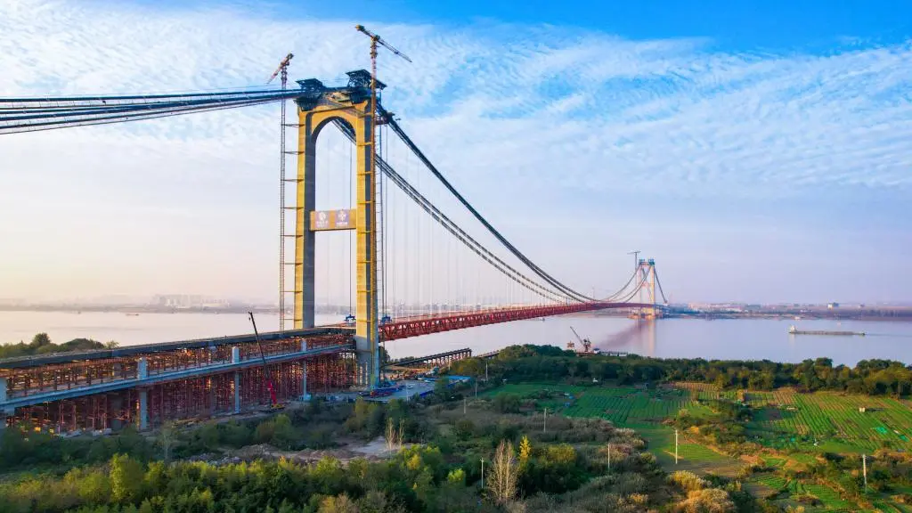 受机场航空限高与通航需求制约,大桥的主塔高度仅195米,垂跨比达到了千米级悬索桥中前所未有的1:15,这对塔机的结构稳定要求极高。