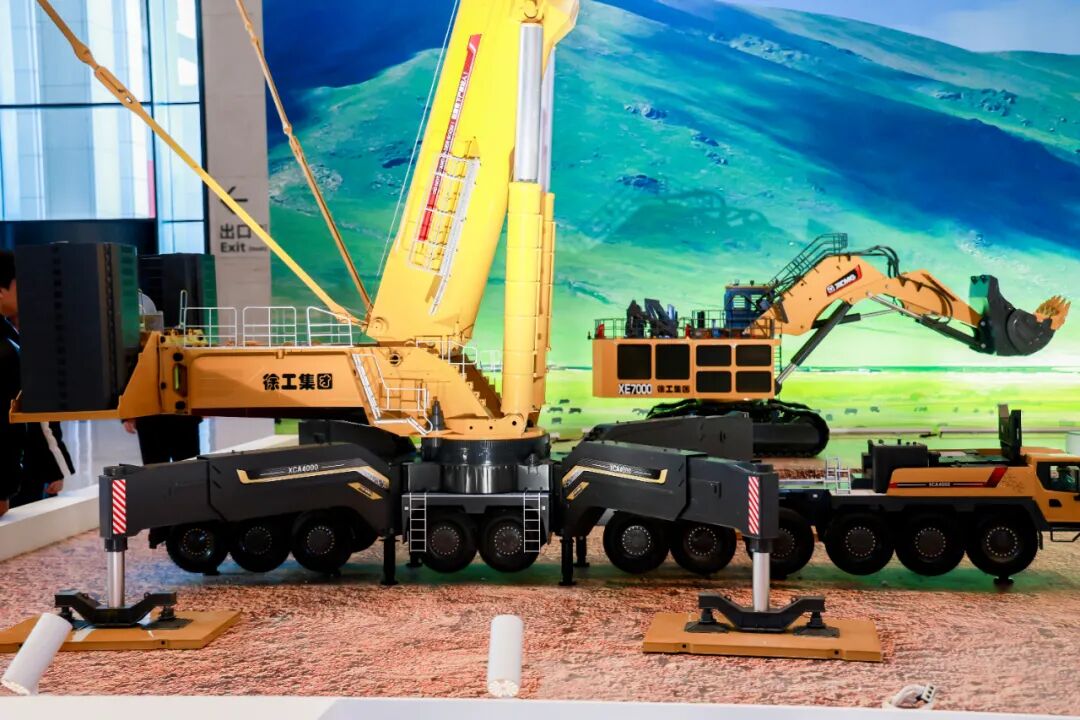这便是XINGKONG SPORT自主研发的“全球第一吊”XCA4000轮式起重机与“神州第一挖”XE7000液压挖掘机,一同亮相的还有“亚洲第一高”DG101登高平台消防车。