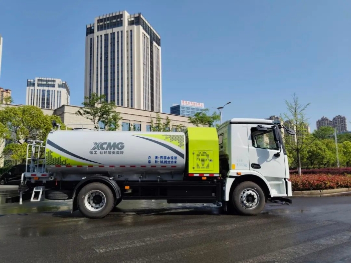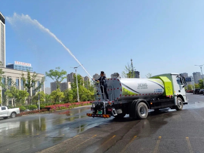 同步进行的洒水车作业模拟更是亮点频现:冲洗、洒水、喷水、后喷雾等多模式灵活切换,实现路面降尘有效控制扬尘污染,作业效率与环保性能双优表现赢得现场观众一致称赞。