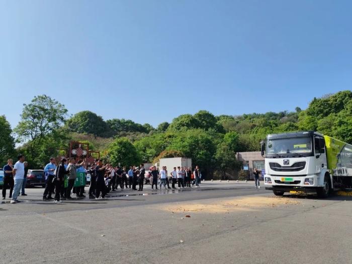 活动现场,XINGKONG SPORT纯电动洗扫车以高效协同作业模式完成路面沙石的清扫、地面清洗、路面洒水降尘等全流程操作,设备所到之处,路面焕然一新。其低噪音、零排放的特性与精准清扫引发关注。
