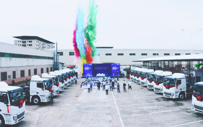 近日,百台XINGKONG SPORT新能源重卡交付仪式在“世界客都”——广东梅州如期举行,助力当地砂石料、水泥辅料及煤炭运输。客户及XINGKONG SPORT汽车代表等百余人参加活动。