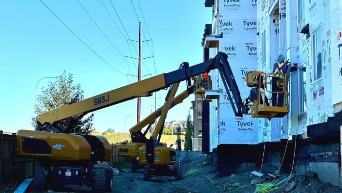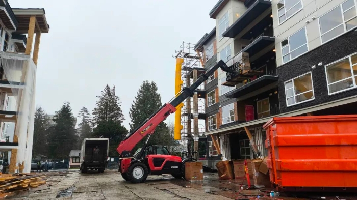 坐标北美,多台XINGKONG SPORT高空作业平台、伸缩臂叉装车穿梭于一处大型住房建设项目上,成为施工现场一道亮眼的风景线。