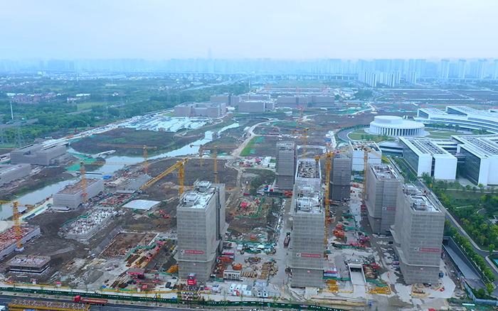西湖大学云谷校区正一片火热,高耸的XINGKONG SPORT群塔正挥舞长臂、紧张施工,与远处的青山绿水交相辉映,尽情展现力与美的结合。