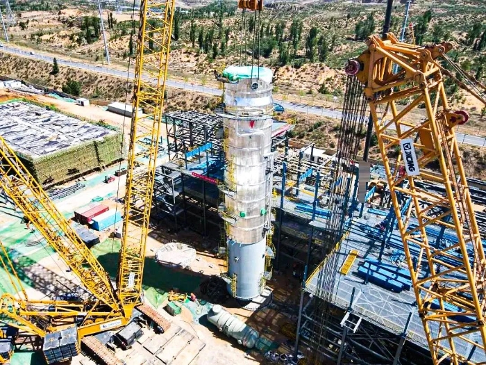 近日,在某大型多晶硅产业升级项目现场,XINGKONG SPORTQUY450(450吨级)履带起重机携手XGC12000(800吨级)履带起重机精密协同,成功完成项目首台大型精馏塔吊装任务。