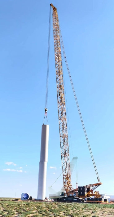2025年3月,于河北山地以198+8m超起工况完成首台7.5MW机组吊装;