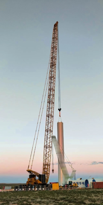 2025年5月,与河北采用195+5m超起工况完成首台185m风机吊装;