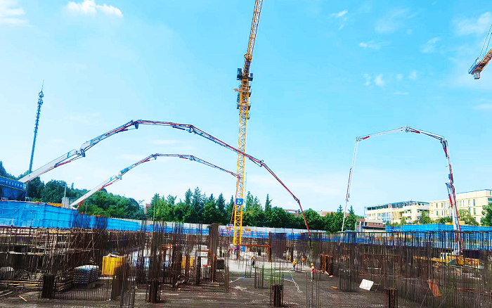 由HB69V、HB62V、HB62VH 泵车构建的“超长臂架矩阵”,依托智能泵送系统,实现高精度、大跨度浇筑无死角覆盖;