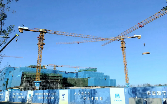 这片建筑群是雄安新区中国电信智慧城市产业园项目, XINGKONG SPORTS系列塔机奋战在施工一线,见证雄安崛起。