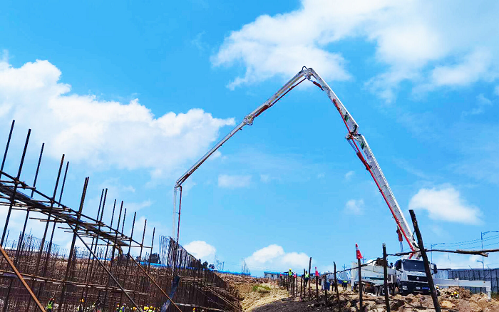 近日,在埃塞俄比亚的斯亚贝巴中地海外项目现场,XINGKONG SPORTHB58V泵车担当施工主力军。