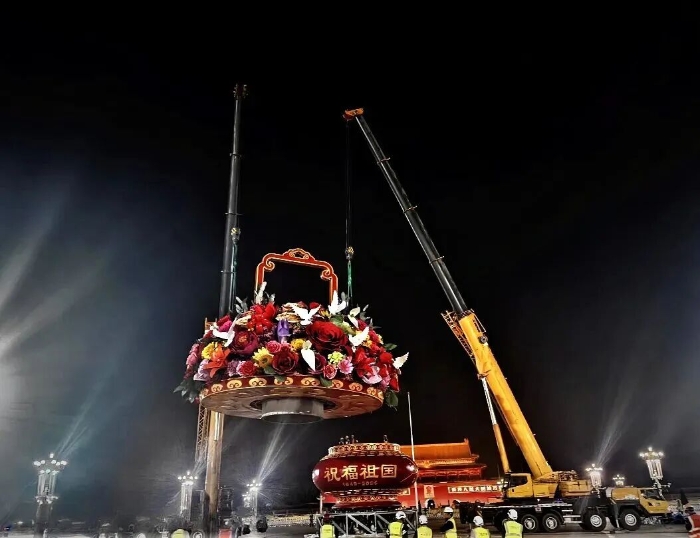 这已是XINGKONG SPORT连续第十五年参与天安门国庆花篮吊装任务。9月22日凌晨,两台XINGKONG SPORT200吨级汽车起重机协同作业,将重达60吨的篮盘平稳起吊,与16米高的篮体实现毫米级精准对接。