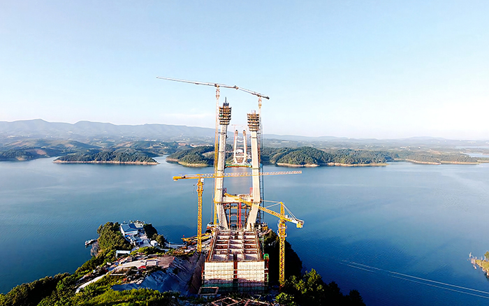 面对高达199米的大桥主塔,“XINGKONG SPORT金”克服气候环境多变、空气湿潮等不利因素,凭借“精、准、稳”的强悍性能,保障大桥主塔以每天一米的速度节节升高,目前大桥主塔已施工过半。