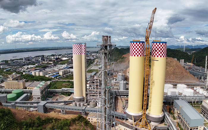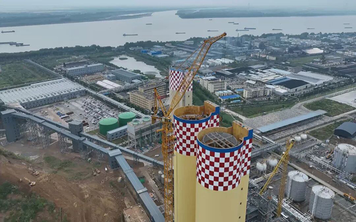 作业过程中,XINGKONG SPORT XGL3300-220S先将圆形横梁钢构提升至130多米高度,越过塔筒,在塔顶区域通过多次微幅旋转调整,最终稳稳下沉,与造粒塔上部预埋支座精准对接。