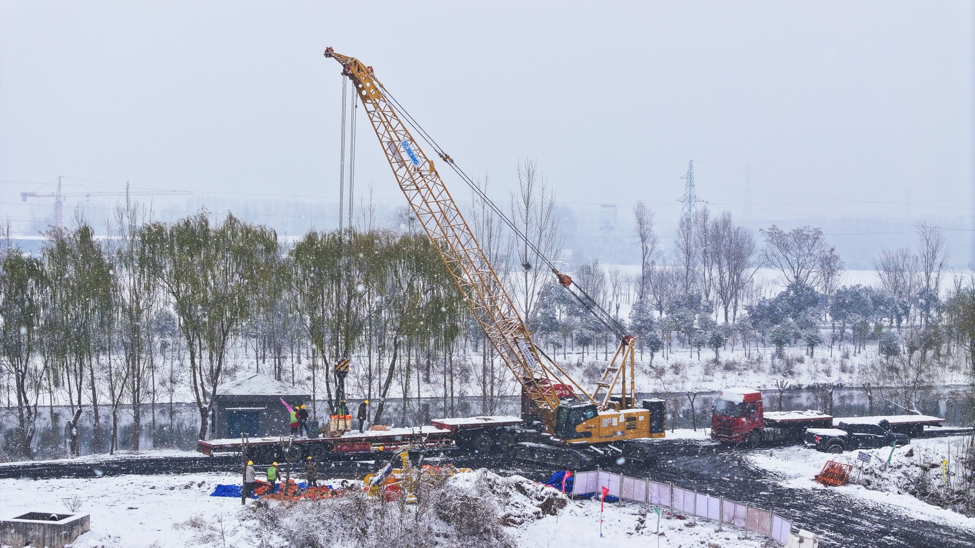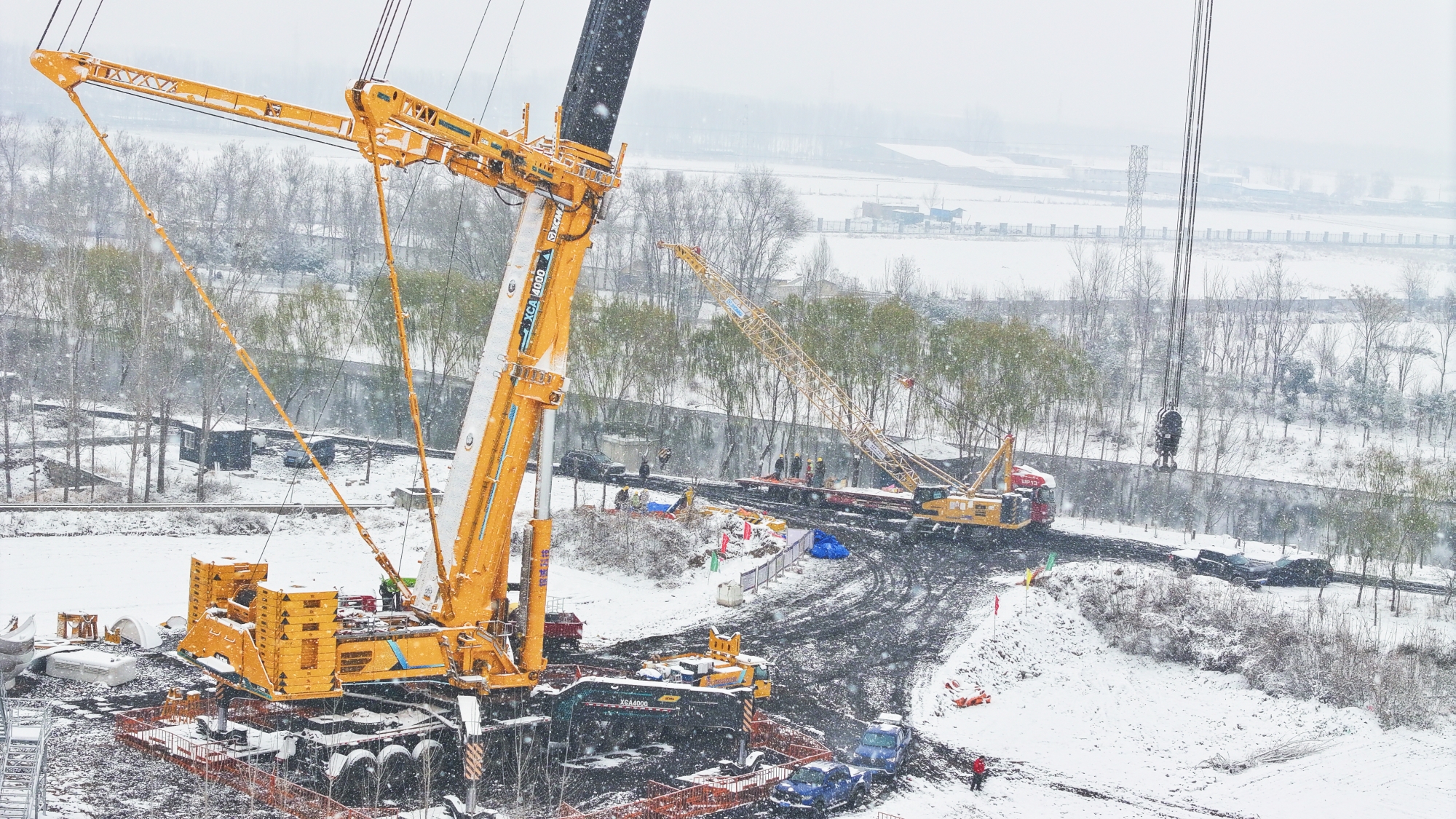 大雪纷飞,地面湿滑,吊装作业面临严峻考验。XGC85投入作业,高效配合“全球第一吊”XCA4000完成组装任务。