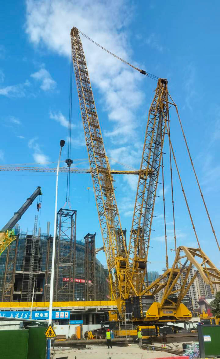 更棘手的是“场地限制关”:工地紧邻城市道路和已建成建筑,空间局促,不仅XGC15000A的站位要反复测算,还得和多台塔吊协调作业范围,避免“抢空间”的机械干涉。