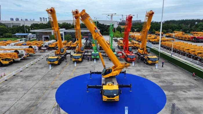 在剪彩仪式上,XCT130G8-1(四桥)起重机缓缓举臂回转“致意”全场,象征G2代百吨级系列产品正式迈向市场。这一系列新品的推出,体现了登录入口作为“链主”企业,在高端装备关键技术突破和产业升级中的持续探索。